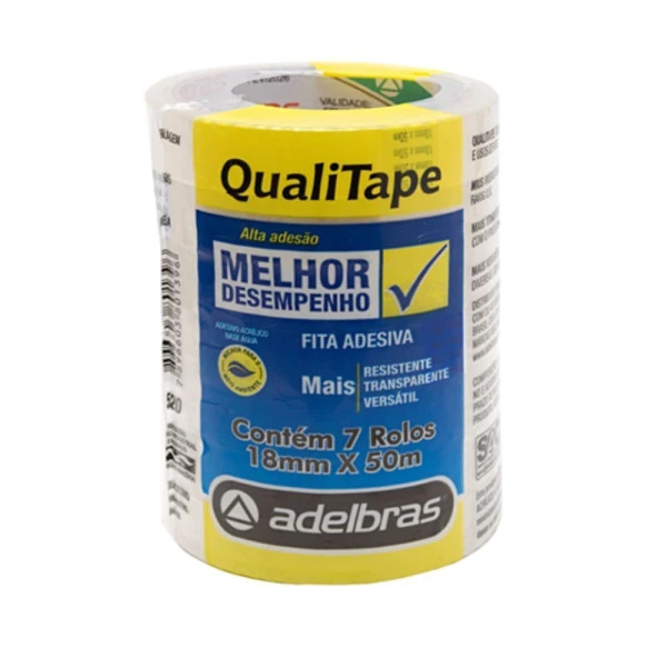 Fita Adesiva transparente 18mm x 50m Qualitape da Adelbras é uma fita adesiva transparente de uso geral, conhecida por sua versatilidade e qualidade.