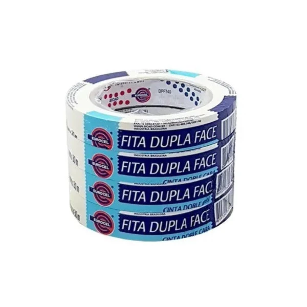 Fita dupla face de papel 19mmx30m DPF 740 eurocel. É uma fita adesiva ideal para aplicações em artesanato, decoração, trabalhos escolares, molduras e outros objetos que precisam de fixação leves. Características