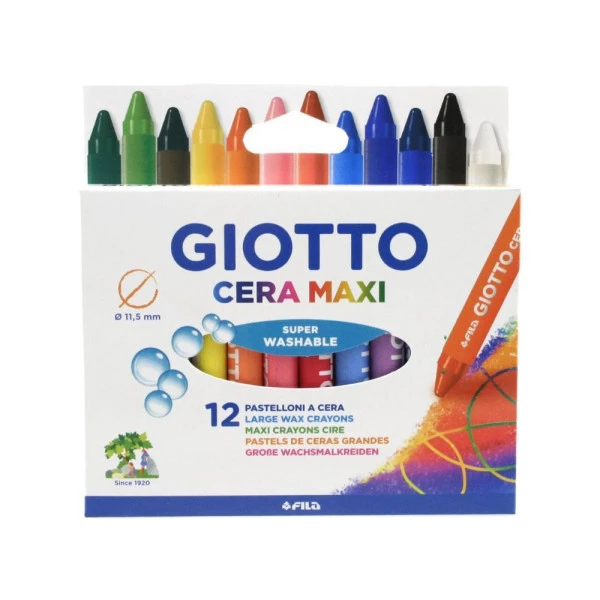 O Giz De Cera Maxi 12 Cores Giotto possui cores são ricas e vivas, e graças ao seu tamanho maior são ainda mais fáceis de segurar e espalhar.