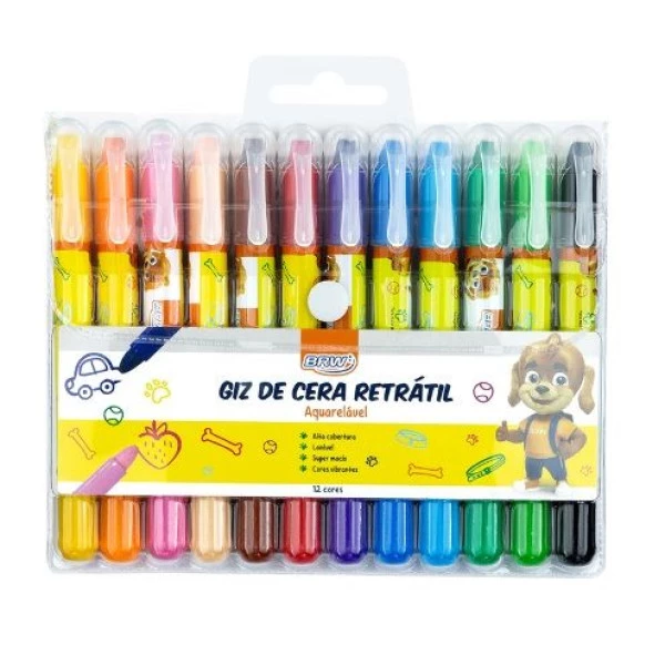 Giz de Cera Retrátil 12 Cores Aquarelável Brw