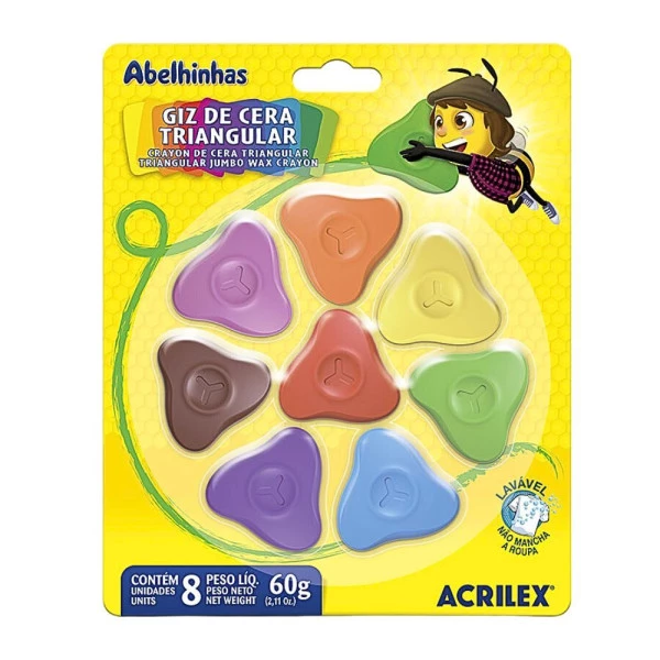 GIZ DE CERA TRIANGULAR 8 CORES 60G LAVAVEL ACRILEX