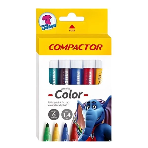 O Hidrocor Grosso Neopen Color da Compactor, com 6 cores vivas, é perfeito para desenhos amplos, colorizações e atividades escolares que exigem traços mais marcantes. Sua ponta grossa proporciona aplicação uniforme, preenchimento rápido e excelente intensidade de cor.