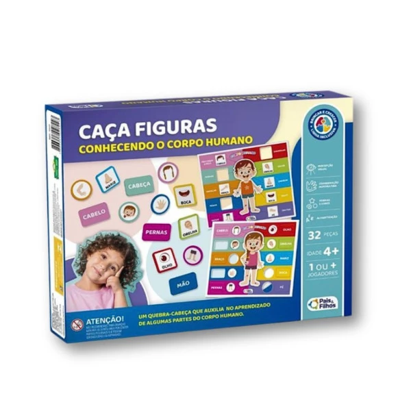 O Jogo Caça Figuras Conhecendo o Corpo Humano da linha inclusiva da Pais e Filhos é uma excelente ferramenta educacional que ensina de forma lúdica sobre as partes do corpo humano.