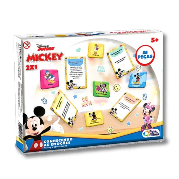 Jogo Conhecendo as Emoções Mickey e seus Amigos Pais e Filhos, é um jogo educativo que ajuda as crianças a identificarem e expressarem suas emoções de forma lúdica, com a ajuda dos queridos personagens Mickey e seus amigos.
