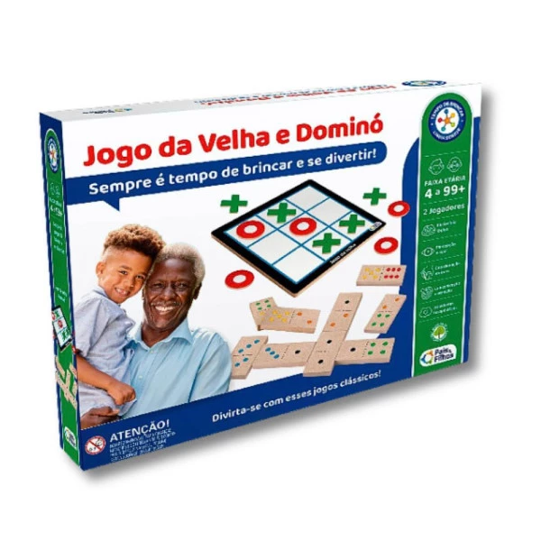 Jogo da Velha e Dominó da linha Senior Pais e Filhos, é uma combinação de dois clássicos atemporais, especialmente adaptado para o público sênior.