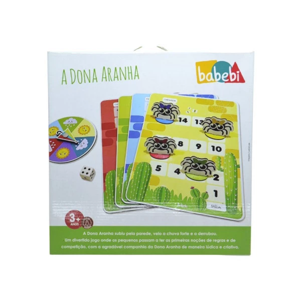 Um divertido jogo onde os pequenos passam a ter as primeiras noções de regras e de competição,com a agradavel companhia da dona aranha de maneira ludica e criativa. Características