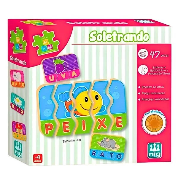 Com 12 palavras de três, quatro ou cinco letras, este jogo educativo estimula a coordenação motora e a percepção visual, tornando o aprendizado envolvente e lúdico.