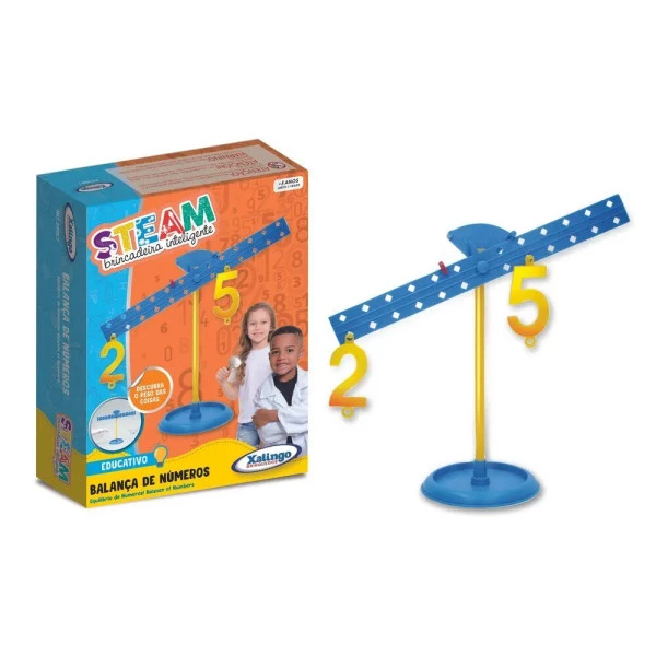 O Jogo Educativo STEAM Balança Pesos e Números da Xalingo é uma ferramenta lúdica que ensina conceitos de matemática e ciências de forma prática e divertida. As crianças utilizam a balança para comparar pesos e associar números, desenvolvendo raciocínio lógico, coordenação motora e noções de equilíbrio e medida.