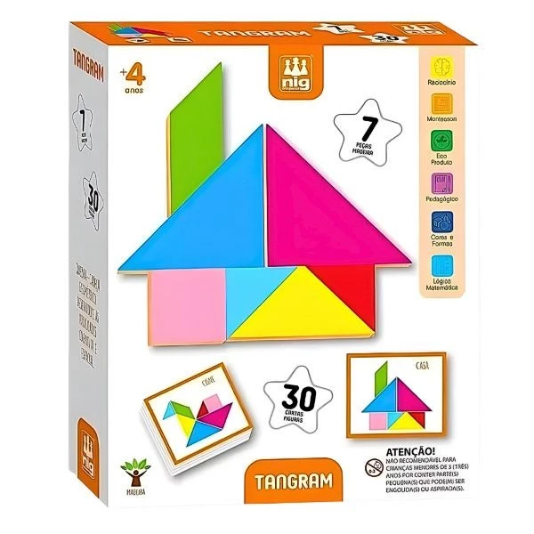 O Tangram Educativo é uma ferramenta lúdica muito utilizada nas escolas para desenvolver diversas habilidades. Combinando as 7 peças geométricas, a criança identifica e compara figuras planas, cria centenas de composições e estimula o raciocínio lógico e geométrico de maneira divertida e envolvente.