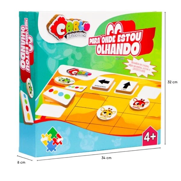 O Brinquedo Para Onde Estou Olhando da Carlu estimula a observação e a percepção visual das crianças de forma divertida! Com peças ilustradas e coloridas, os pequenos aprendem a identificar direções e posições, desenvolvendo a atenção e o senso espacial durante a brincadeira. Produzido em material resistente e seguro, é ideal para o uso em casa ou na escola.