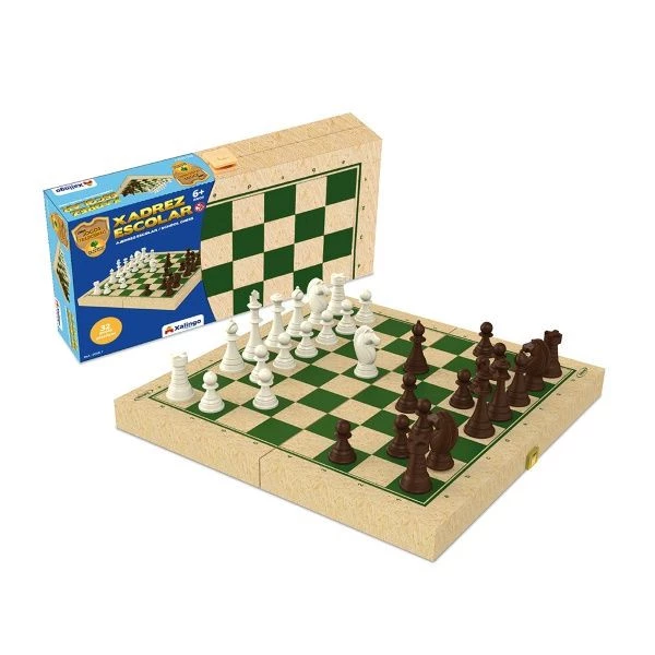 O jogo de xadrez em madeira da Xalingo promove habilidades cognitivas, como pensamento estratégico, planejamento antecipado e tomada de decisões.