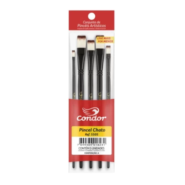 Kit Pincel de Pelo Chato Artistico Mesclado 05und Condor
