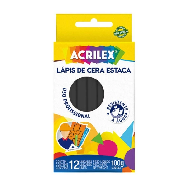 Lápis de Cera Estaca Preto Acrilex
