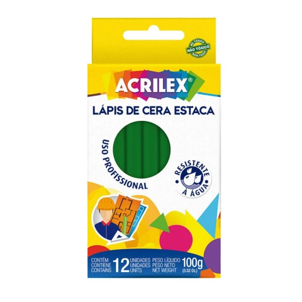Lápis de Cera Estaca 100g Verde Bandeira Acrilex uso profissional resistente à água.