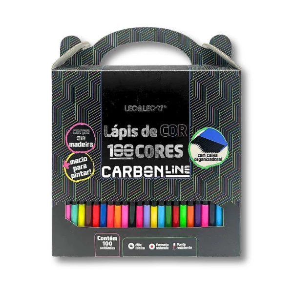 Lápis de Cor 100 Cores Carbon Leo&Leo. É um conjunto de lápis redondo com 100 cores vibrantes e resistentes, possuem alta pigmentação, uma boa opção para desenhar e colorir com precisão. Características