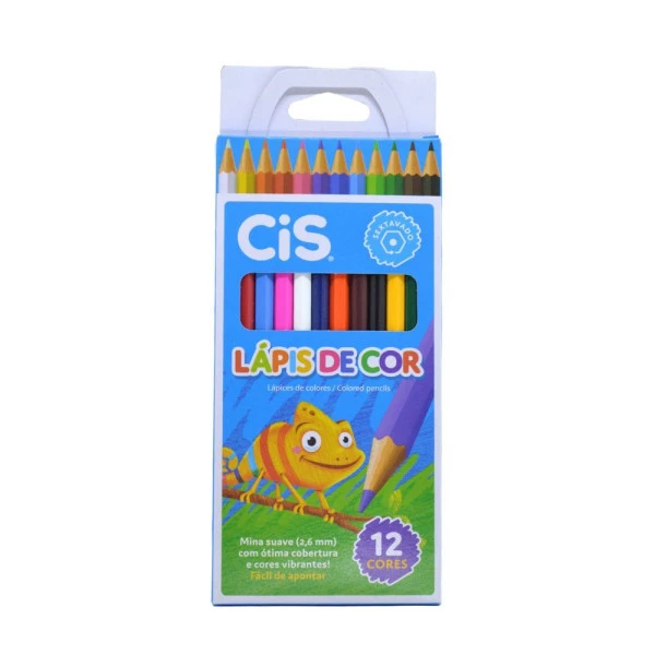 Lápis de cor sextavado. Os lápis Cis, possuem cores vivas, corpo plástico no formato sextavado, grafite resistente .