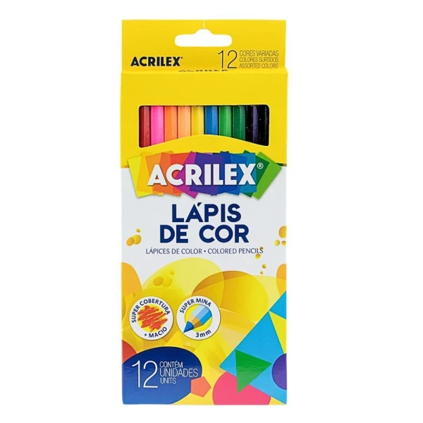 LÁPIS DE COR 12 CORES HEXAGONAL ACRILEX 9692 Características