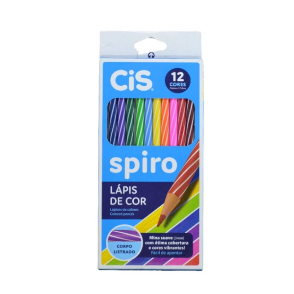 Lápis de cor spiro 12 cores possui um design personalizado. Seu corpo é redondo e listrado da cor da sua ponta. Com cores vibrantes, mina suave de 3mm, e fáceis de apontar.