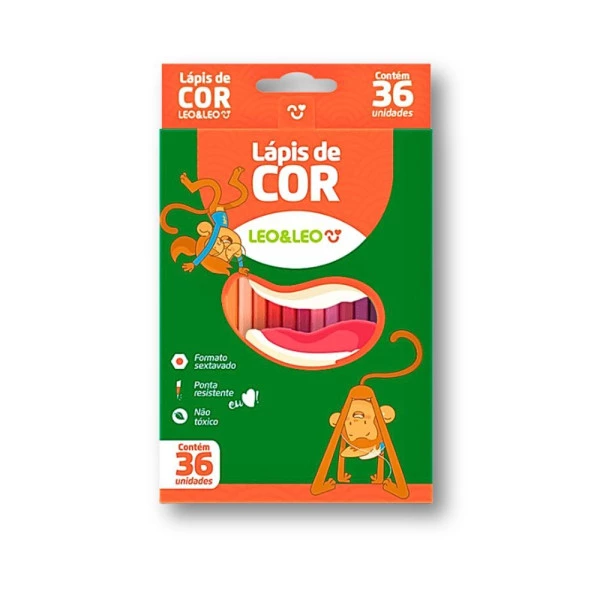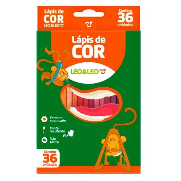 Lápis de Cor 36 Cores Sextavado da Leo&Leo, é um conjunto de lápis de cor, com formato sextavado, que oferece mais conforto durante o uso, evitando que os lápis rolem facilmente sobre a mesa. Esse formato também permite uma pegada firme. Com 36 cores vibrantes, esses lápis são ideais para uso escolar e artístico. Características