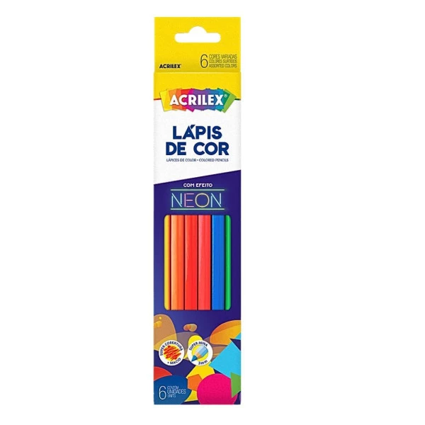 LÁPIS DE COR 6 CORES NEON HEXAGONAL MINA 3MM EFEITO NEON ACRILEX 9646