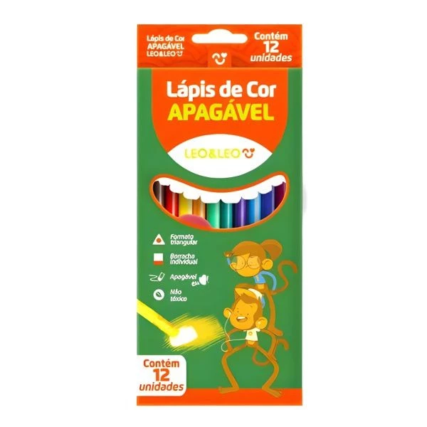 Lápis de Cor Apagável 12 Cores Triangular Leo&Leo