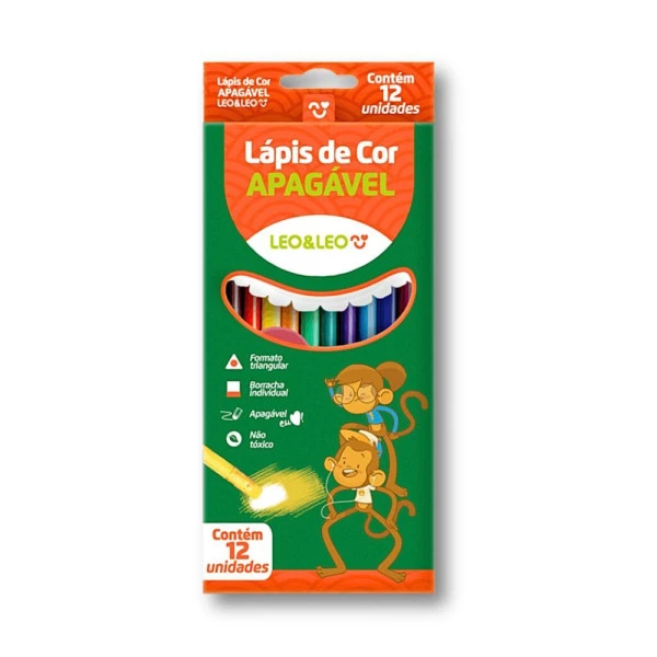 Lápis de cor Apagável 12 Cores Triangular Leo&Leo, é um conjunto com 12 lápis em formato triangular. que combina criatividade com praticidade. A praticidade de apagar torna esses lápis ideais para projetos escolares e artísticos em que a precisão e a correção são importantes. Características