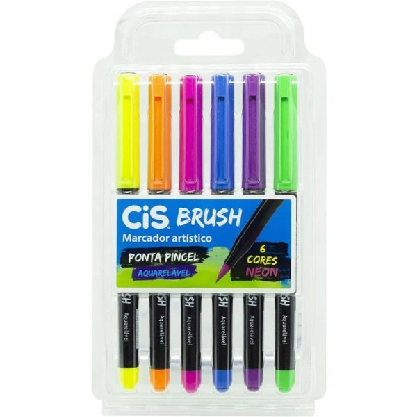 O estojo com 6 canetas Brush Pen é estilo pincel e ideal para projetos artísticos, ilustrações e lettering.