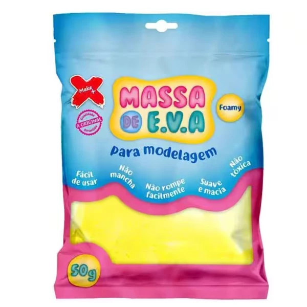 Massas de EVA podem ser usadas para modelagem, artesato e slime. Além das cores do pacote, novas tonalidades podem ser criadas misturando as massas Características