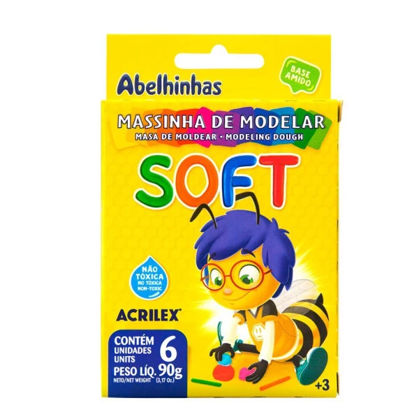 Massinha de Modelar 6 Cores Soft 90g Abelhinha Acrilex