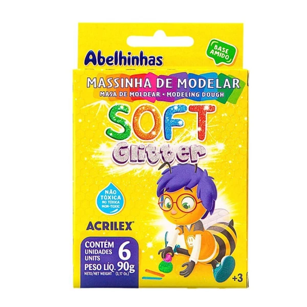 Massinha de modelar soft glitter. A base de amido.
