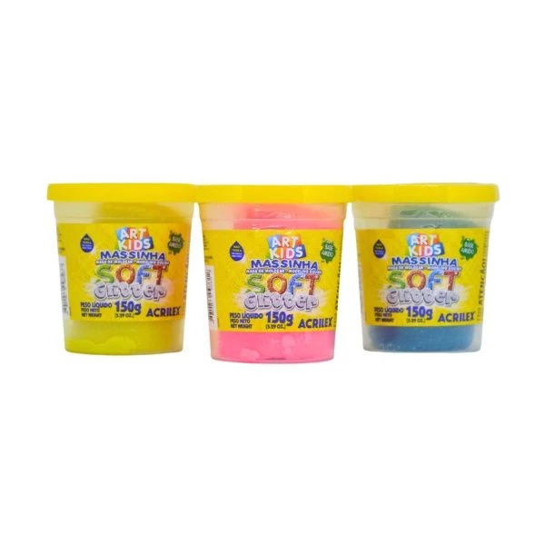 Massa de modelar 150g Soft, Desenvolvida para uso escolar ou entretenimento. Ideal para atividades de desenvolvimento da coordenação motora e percepção de formas. Características