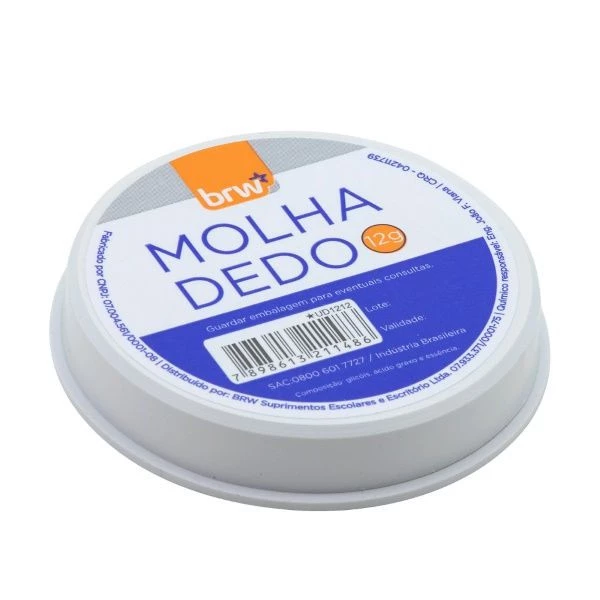 Molha dedos BRW de 12g modelo UD1212 ideal para facilitar o manuseio de papéis documentos e contagem de folhas oferecendo mais agilidade e precisão em tarefas de escritório e atendimento possui textura suave que não gruda nos dedos e garante praticidade no uso diário