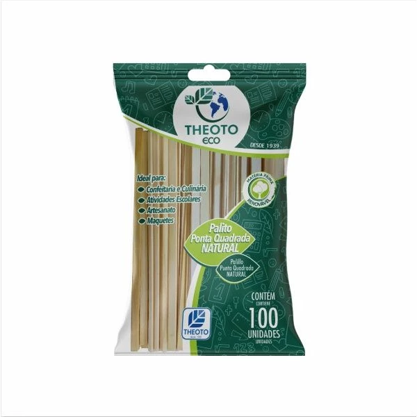 Palito Escolar Ponta Quadrada de Picole Natural pct/100 Theoto, são indicados para uso em trabalhos escolares. Auxiliando no desenvolvimento da criatividade das crianças.