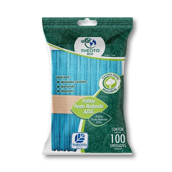Palito Escolar Ponta Redonda Azul de Picole pct/100 Theoto, são indicados para uso em trabalhos escolares, Auxiliando no desenvolvimento da criatividade das crianças.