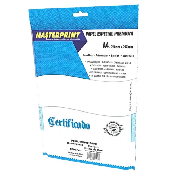 Papel Especial Casca de Ovo Branco A4 180g – 50 Fls Masterprint