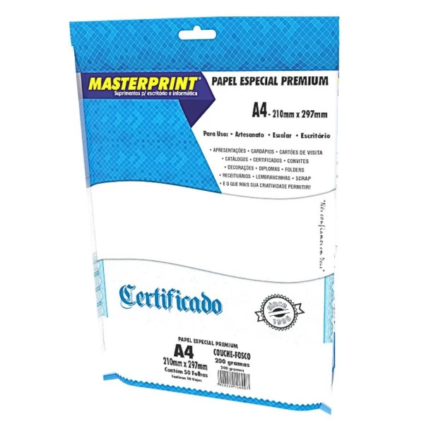 Papel Couchê Branco Semi Brilho A4 200g 50fls (Masterprint)
