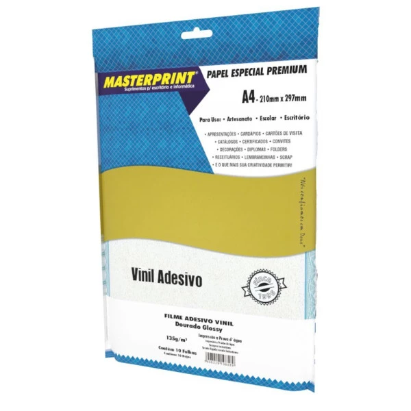 Papel Adesivo Vinil Dourado 135g/m² A4 10 Folhas Masterprint