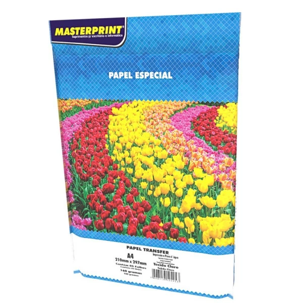 Papel especial para impressão em que é possível transferir a imagem de um papel para a superfície de variados tecidos claros. Indicado para projetos têxteis e adesivos personalizados.
