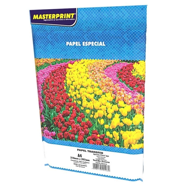 Papel Transfer Sublimação Glossy Branco A4 235g para Tecidos Escuro 5 folhas, Masterprint