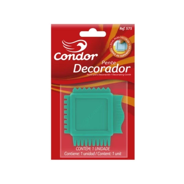 Pente Decorador 4 Facetas 575 Condor pode ser usado em todas as superfícies. Possui 4 facetas dentadas. Características