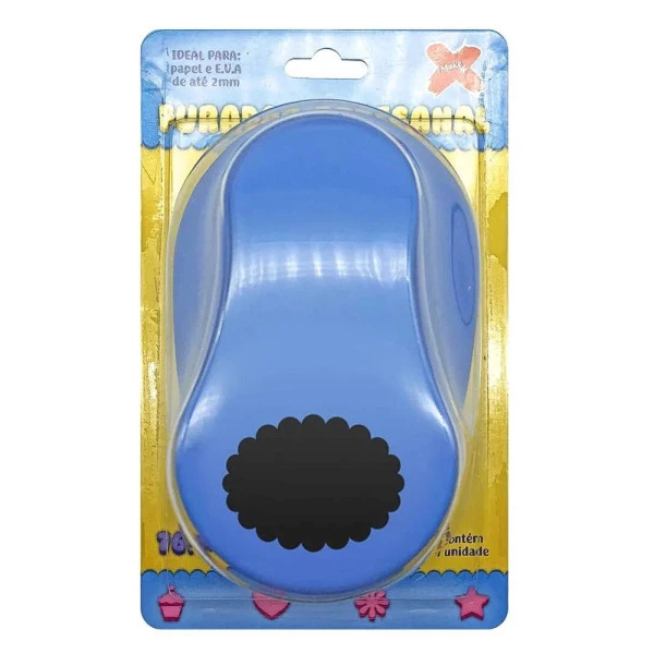 O perfurador de EVA Artesanal 76mm Oval Escalopado Gigante da Make+ é ideal para artesanatos, permitindo cortar formas precisas de EVA com até 2mm de espessura. Esse modelo é prático e agiliza o trabalho, sendo indicado para criar enfeites e detalhes em projetos decorativos. Características
