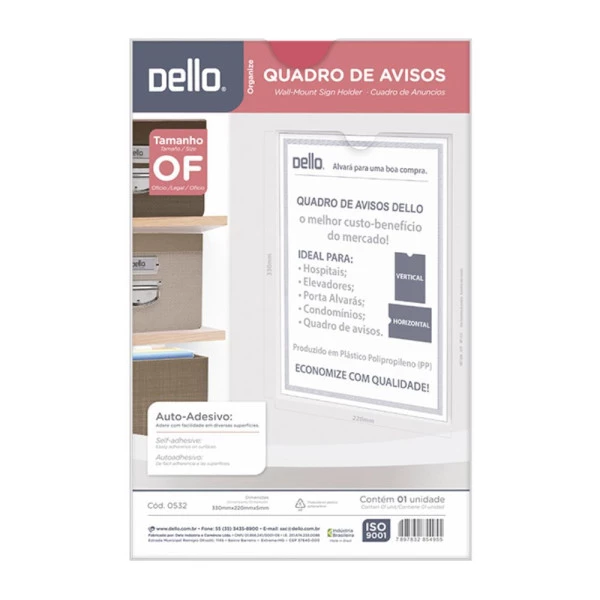 O Quadro de Avisos Ofício Multiuso da Dello é uma solução prática e eficaz para a organização e exibição de informações. Seu design transparente e durável garante que os documentos sejam visíveis e protegidos.