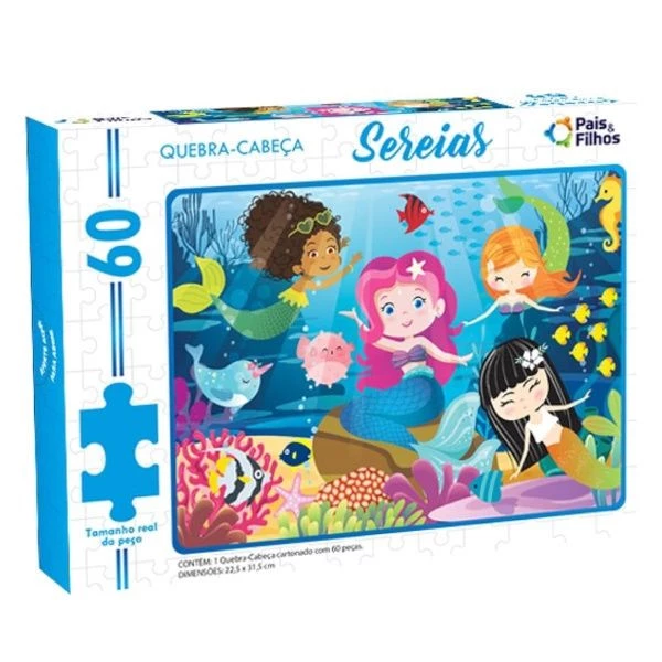 O Quebra-Cabeça Sereias traz uma cena encantadora e cheia de cores, perfeita para estimular a imaginação das crianças. Com 60 peças de encaixe fácil, ele ajuda a desenvolver coordenação motora, atenção, raciocínio lógico e percepção visual. Indicado para crianças a partir de 4 anos, é uma atividade divertida, educativa e ideal para momentos em família.
