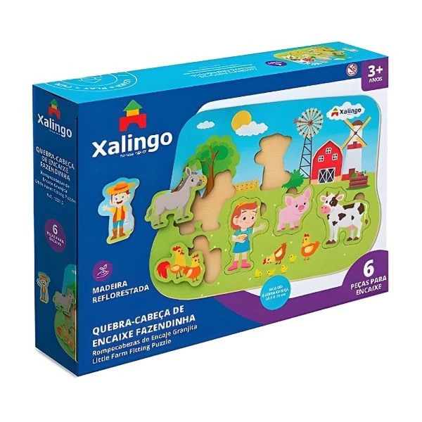 O Quebra-Cabeça de Encaixe Fazendinha da Xalingo é ideal para os pequenos começarem a explorar o mundo dos quebra-cabeças. Com 6 peças grandes e resistentes, as crianças aprendem a identificar animais e elementos da fazenda, desenvolvendo coordenação motora, percepção visual e raciocínio lógico de forma divertida e segura.
