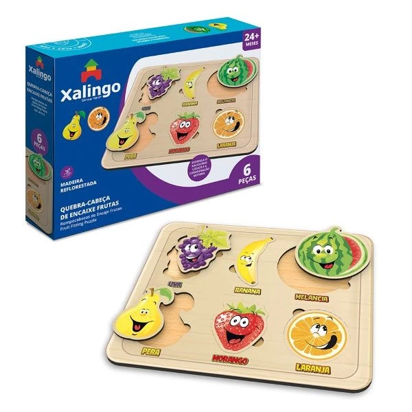 Vem com 6 peças grandes e coloridas que representam diferentes frutas.