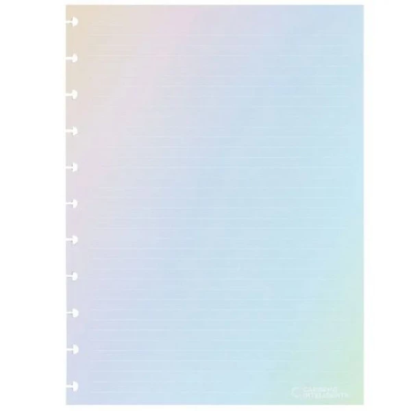 Em um degradê de cores, o Refil Rainbow é a mistura da beleza das cores do arco-íris e os sentimentos bons que cada uma delas carregam em si, com a funcionalidade das linhas brancas que suportam suas anotações, lettering, desenhos ou rabiscos sem as distrações das linhas escuras convencionais.