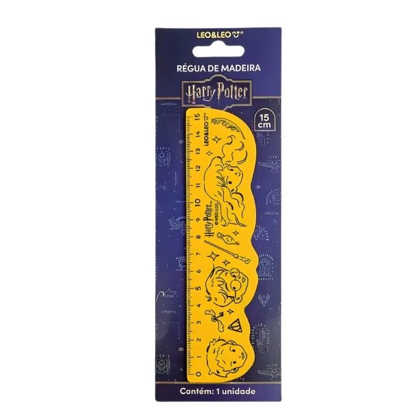 A Régua de Madeira Harry Potter de 15 cm é perfeita para quem gosta de unir praticidade com um toque do mundo mágico. Leve e fácil de usar, ela auxilia em medições e traços precisos no dia a dia escolar. O design inspirado na saga deixa o material mais divertido e especial, ideal para fãs que querem adicionar estilo ao estojo. Características