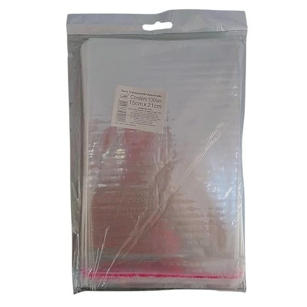 Saco Adesivado Transparente Incolor com Aba 15x21cm Gala Embalagens pacote com 100 unidades. Produzido em plástico polipropileno com aba adesiva de 2,5cm, é ideal para lembranças e presentes, oferecendo praticidade e um acabamento limpo e sofisticado. Características