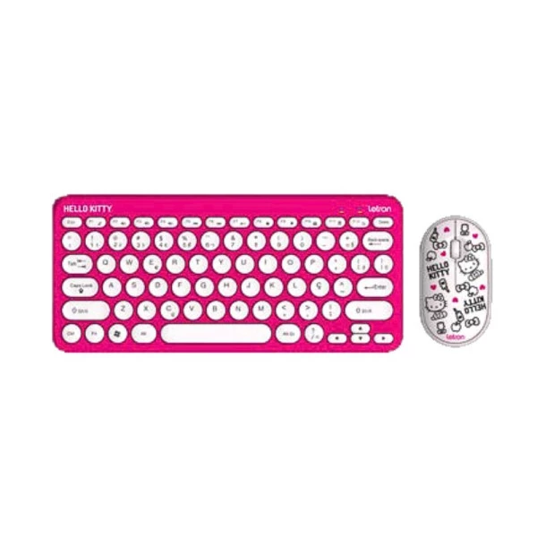 Combo Teclado e Mouse Wireless e Bluetooth Hello Kitty Letron é uma escolha perfeita para quem deseja ter uma estação de estudo ou trabalho personalizado, inspirado na personagem Hello Kitty.