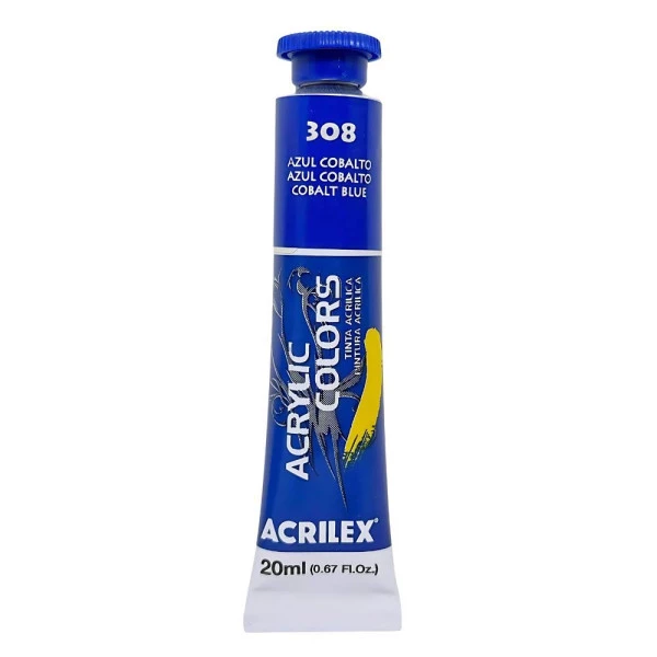 TINTA ACRÍLICA PARA TELA ACRYLIC COLORS 20ML AZUL COBALTO 308 - UNIDADE | ACRILEX 13123